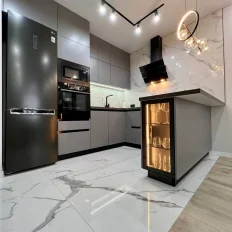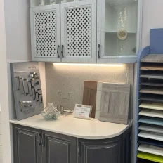 Выезд инженера-конструктора на замер и создание проекта кухни прямо у клиента с детализацией по городу. Заключение договора и гарантия на мебель 18 месяцев. В подарок — 3D-проект с визуализацией в цвете. Мы используем все доступные материалы: массив, МДФ, пластик, эмаль, ПВХ-пленка, шпон. Рассчитываем бюджет под любые потребности клиента, работаем без посредников.